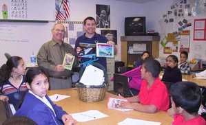 BookPAL Steven Fried reads to 12 classes in the library at Palomino II School. Steve didn't want "his" kids to go without books for the holidays. Thanks to a generous donation to BookPALS from the Arizona PGA golfers, teachers were able to select the exact books they wanted in their book basket classroom library. Trader Joe's graciously donated the baskets. During Ellen Nathan's 2005 annual visit to Arizona for the BookPALS workshop, BookPALS delivered all the baskets to the teachers and students. The delighted students responded with touching thank you notes.