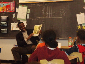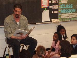 BookPAL Jimmy Whalen reads to Ms. Weaver's fourth grade class.