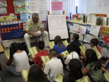Students at Cathedral City Elementary School delight in their BookPALS reader Tim Brown. He's an actor and an NFL star.