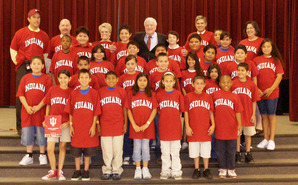 "Martha McDevitt's 5th grade class at Cathedral City Elementary was "adopted" by Indiana University thanks to the efforts of local radio talk show host, Anita Rufus, who reads to McDivitt's class as part of the Screen Actors Guild Foundation BookPALS program. Rufus introduced her friend Jack Kimberling, a retired Los Angeles lawyer, political author, and active alumnus of IU and its law school, to the "No Excuses University" program, and Kimberling took the idea to IU which readily agreed to sponsor the class.