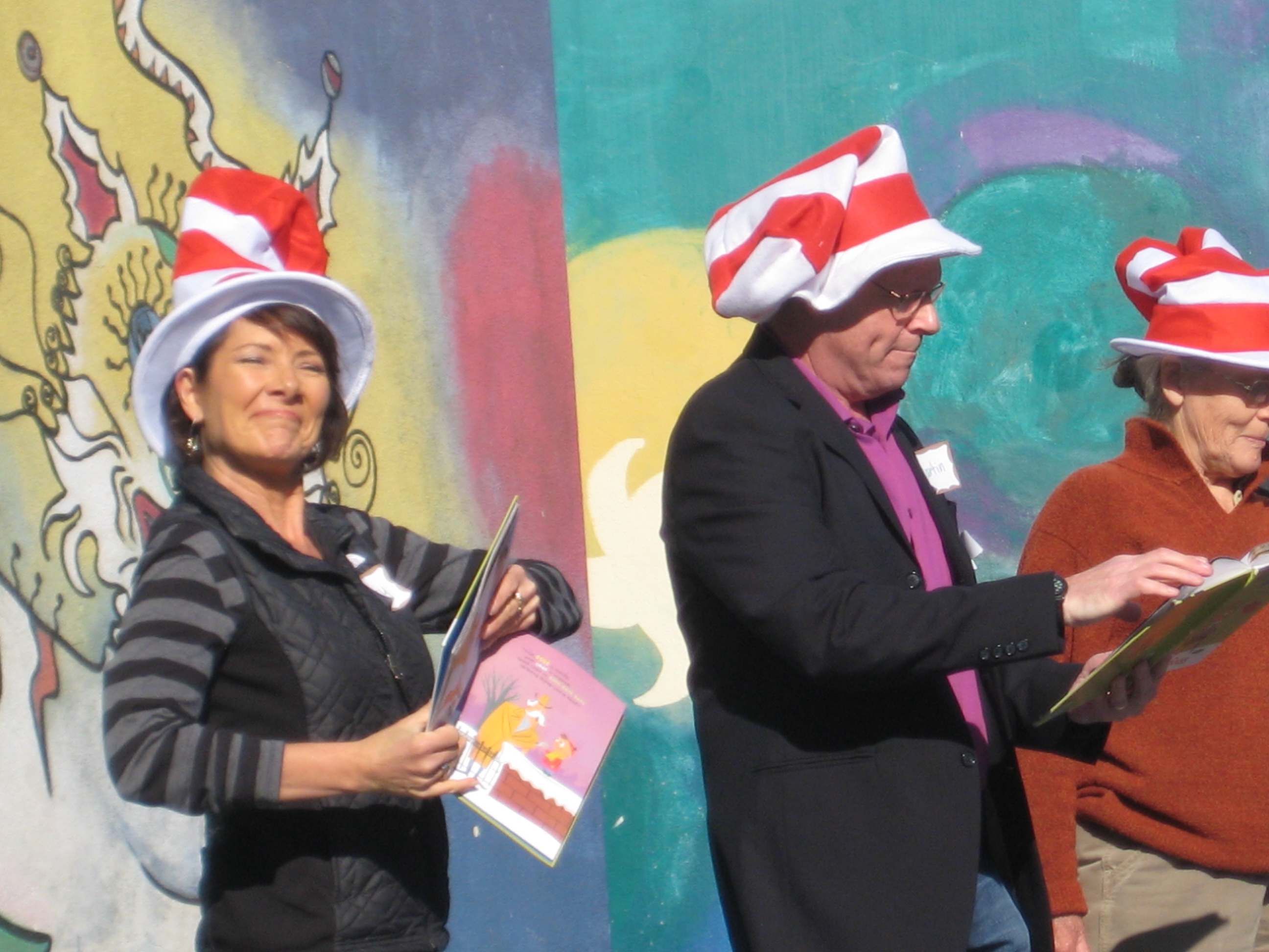 San Francisco BookPALS gathered today for their 15th celebration of Read Across America Day, at the very school where BookPALS began in San Francisco 15 years ago: Rooftop School. SF BookPALS Mary Dilts, Duncan Fife, Martin Ganapolos, William Hall, Roger Oyama, and Martha Stookey were joined by local author Ashley Wolff to celebrate Dr. Seuss’s birthday and read his story Gerald McBoing Boing to over 350 kids. The kids enjoyed joining in at the end, practicing some “Boings!” and other sound effects along with SF BookPALS!