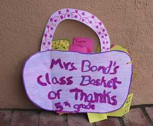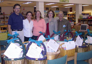 BookPAL Steven Fried reads to 12 classes in the library at Palomino II School. Steve didn't want "his" kids to go without books for the holidays. Thanks to a generous donation to BookPALS from the Arizona PGA golfers, teachers were able to select the exact books they wanted in their book basket classroom library. Trader Joe's graciously donated the baskets. During Ellen Nathan's 2005 annual visit to Arizona for the BookPALS workshop, BookPALS delivered all the baskets to the teachers and students. The delighted students responded with touching thank you notes.