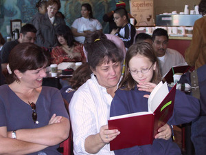 In February, 2004, 9th graders from Metro Tech High School in Phoenix and 6th graders from Madison Park Elementary School in Phoenix, completed their hard bound autobiographies. As part of the BookPALS "We the Children" program funded by a grant from the Starbucks Foundation, each child wrote and illustrated his/her own story after interviewing family members. High school students learned new computer skills by scanning and inserting photos. Sixth graders honed their word processing skills. Not only did the students learn the value of books, they learned the importance of their own cultures, histories, and families.