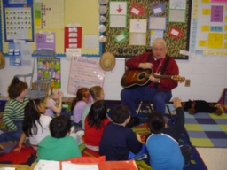 Atlanta BookPAL Paul Carden Playing the Guitar and Singing to Robyn Lince's Second-Grade Class at Hasty Elementary School in Canton, Georgia