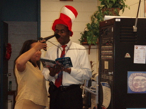 At Piney Branch Elementary School in Takoma Park, Maryland, students were read to by BookPALS, police officers, fire fighters and parents. The principal, Mr. G, read, The Cat in the Hat to the entire school over the PA system.
