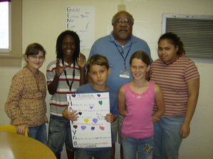 BookPAL LeRoy Mitchell with writers of thank you poems from Mrs Alverez's 4th grade.