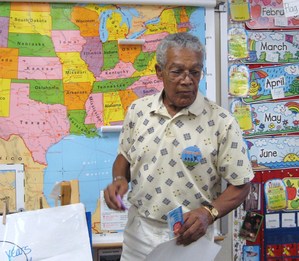 Students at Cathedral City Elementary School delight in their BookPALS reader Tim Brown. He's an actor and an NFL star.