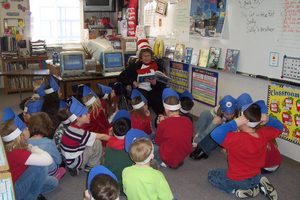 Minnesota Coordinator Delta Giordano read to four different classes during the week, including Mrs. Schulz's 1st-graders at Falcon Heights Elementary.