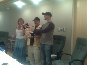 Our amazing ensemble of volunteer actors rehearsed several times to prepare the Reading Assemblies. Pictured are Barbara Mundy, Jon Mindell, and Eric Saiet.