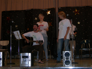 The schools involved in the program are given an assembly for all of the 4th and 5th graders in the school. There is generally an ensemble of four to five volunteer actors that take part in the skits as well as one musician/actor. The auditorium is filled with students wearing their T-shirts by the end of the assembly!