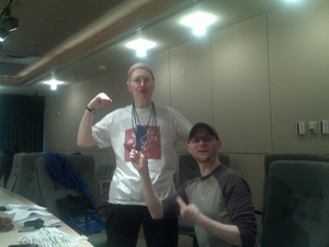Margaret Flanagan and Eric Saiet are pictured preparing the Rap for the peformances.