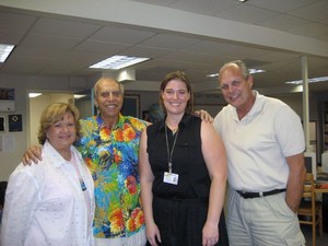 (L-R) Judy Bell of Palm Springs, Shep Saunders of Palm Springs, Jennifer Geyer, reading coach/BookPALS site coordinator, and Dick Mills of Palm Desert at the school's Annual Volunteer Tea in June