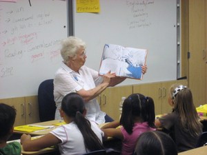 Bonnie Flynn of Palm Desert reads, "Read All About It," written by First Lady, Laura Bush and daughter, Jenna. Fun to read, the story encourages students to read and explains why it is fun and important.