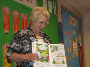 Sharon Chase of Palm Desert enjoys her first day as a BookPALS reader.