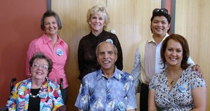 (Standing L-R: Eileen Traub of Cathedral City, Lois Stewart of Rancho Mirage, and Manny Dela Rosa (Manny the Movie Guy of KMIR 6).