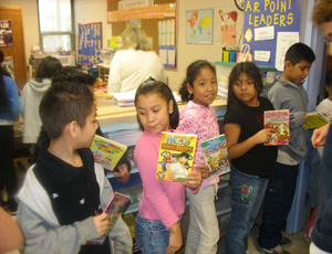 Atlanta BookPAL Martha Knighton (Queen Martha) reads to High Point Elementary School students every Monday morning. The morning of February 9th was extra special because, not only did Queen Martha read, but each child received a book of their very own to bring home! This happened thanks to Demetria White, Marketing Manager for Reading Tree. Demetria set up a table and distributed books to every child in the school!