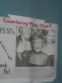 PS 52 is a very special school for NY BookPALS as there is a library named in honor of Mary Stuart. Mary Stuart started NY BookPALS over twelve years ago. The image shown was hung during every BookPALS Reading Club Assembly that was performed at this special school.