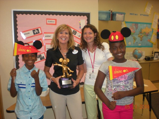 Fourth graders from Catalina shine with Disney's Cheryl Boza, Community Relations Manager and Natalie Rogers, Florida Program Director