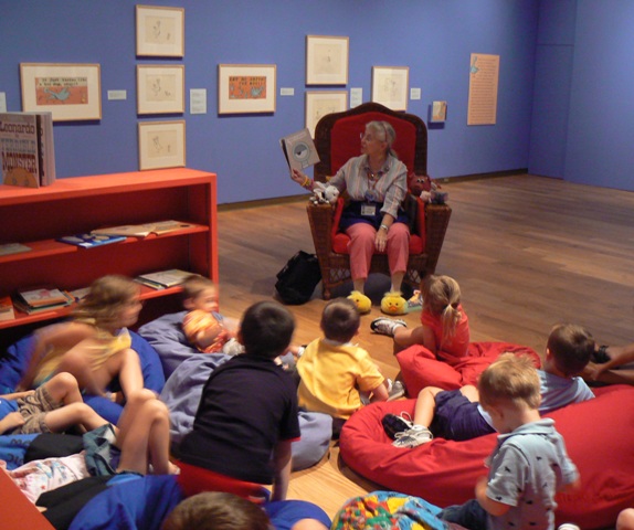 BookPAL Judy Babcock entertains OMA patrons during the summer picture book exhibit, Knuffle Funny: The Art and Whimsy of Mo Willems. This is the OMA's 7th annual picture book art exhihbition. A reading area, discovery center, and outstanding programming accompany the exhibition, which runs from 5-22-10 to 8-29-10. Don't miss the Target Family Fun Day on June 12, from 10 a.m. - Noon. Enjoy a morning of fun with art activities, gallery hunts, music with Mr. Richard, storytelling with Bill Cordell and much more! Free admission on this day only!